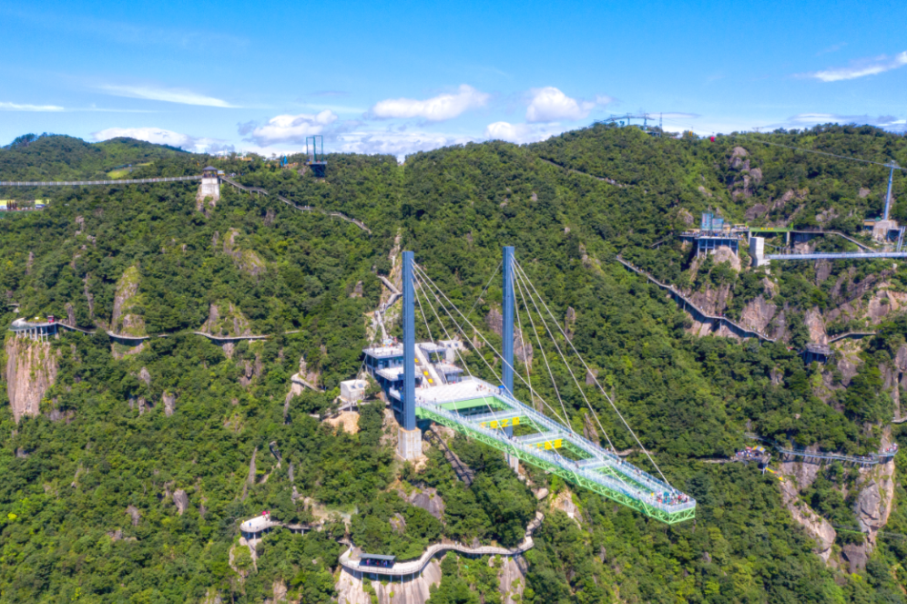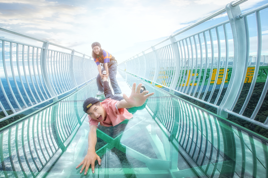 沿崖壁向外挑空80.9米,玻璃部分总长365米