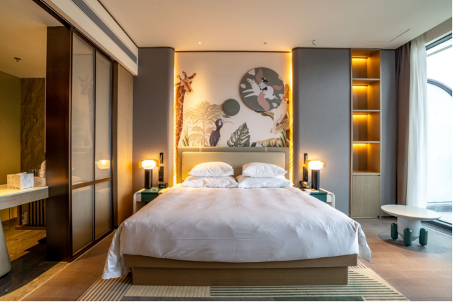 儿童房内处处都是惊喜和细节,除了随处可见的卡通壁画外,更是为孩子们提供了专属的小毛巾、浴袍、小雨伞、小凳子等等。给予孩子们无微不至的关心与呵护,也给大家带来更好的亲子体验。
