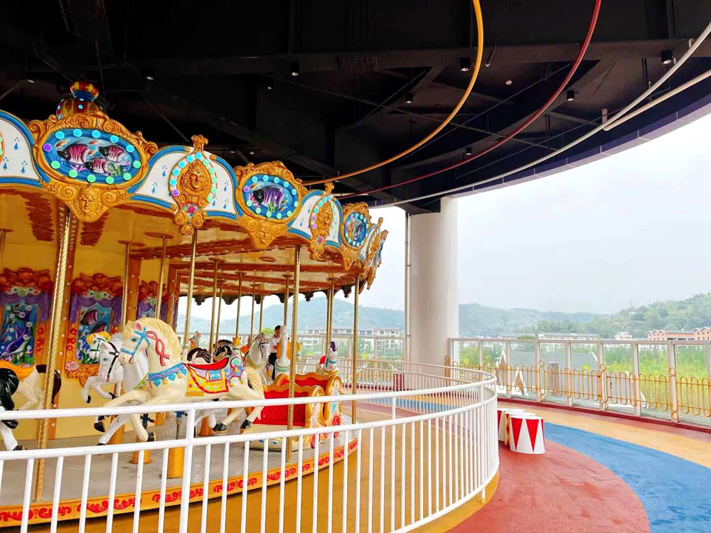 外形如待发射的火箭,既二次元又可爱,溜溜塔共八层高61.8米,一层一个玩乐项目:旋转木马,自由落体,奇幻灯光秀,穹顶影院……简直让人乐不思蜀。