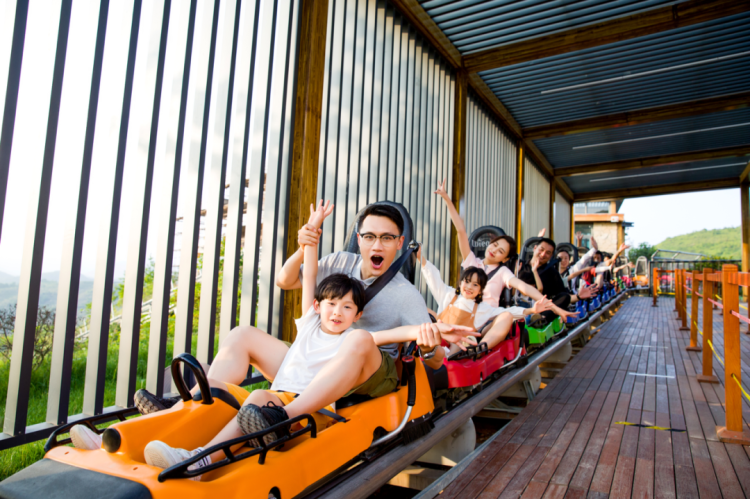从赛道起点出发至终点,速度和方向全靠自己手动掌控,全赛道在山林间盘旋,整个乐园的美景囊括其中,一览无余。