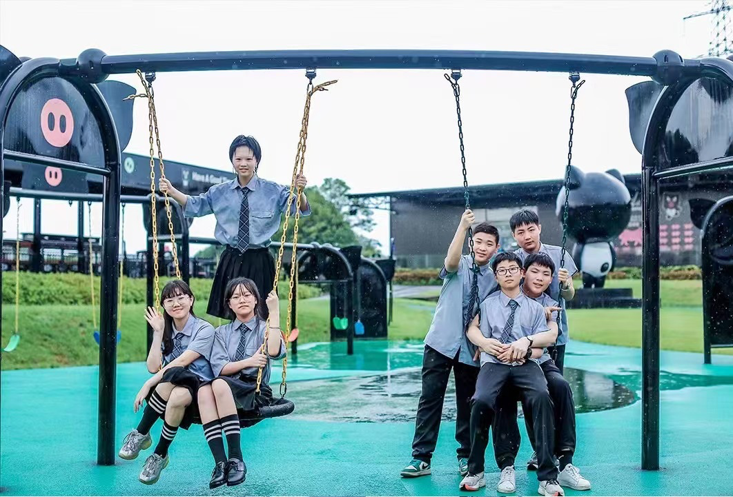 自由活动时间,孩子们打卡网红秋千,荡到高处时,能看到牧场的全景;玩旋转木猪,坐在粉色的小猪座椅上,转个不停;在猪笼城堡里捉迷藏,你追我赶,尽情释放活力。