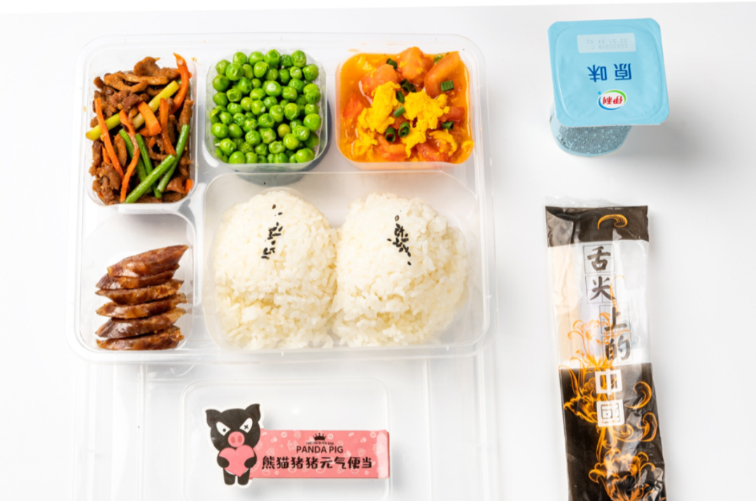 午餐是两头乌特色餐,熊猫猪猪做的香肠肉、带着甜味的蔬菜、香喷喷的米饭,孩子们边吃边笑,氛围轻松愉悦。