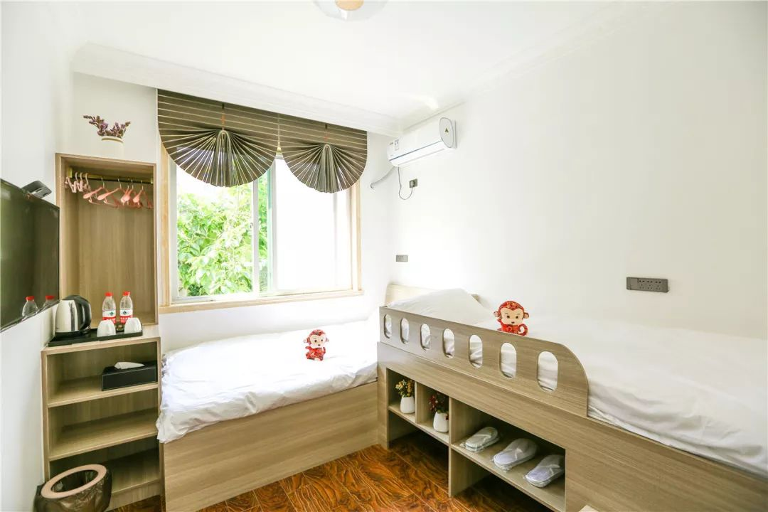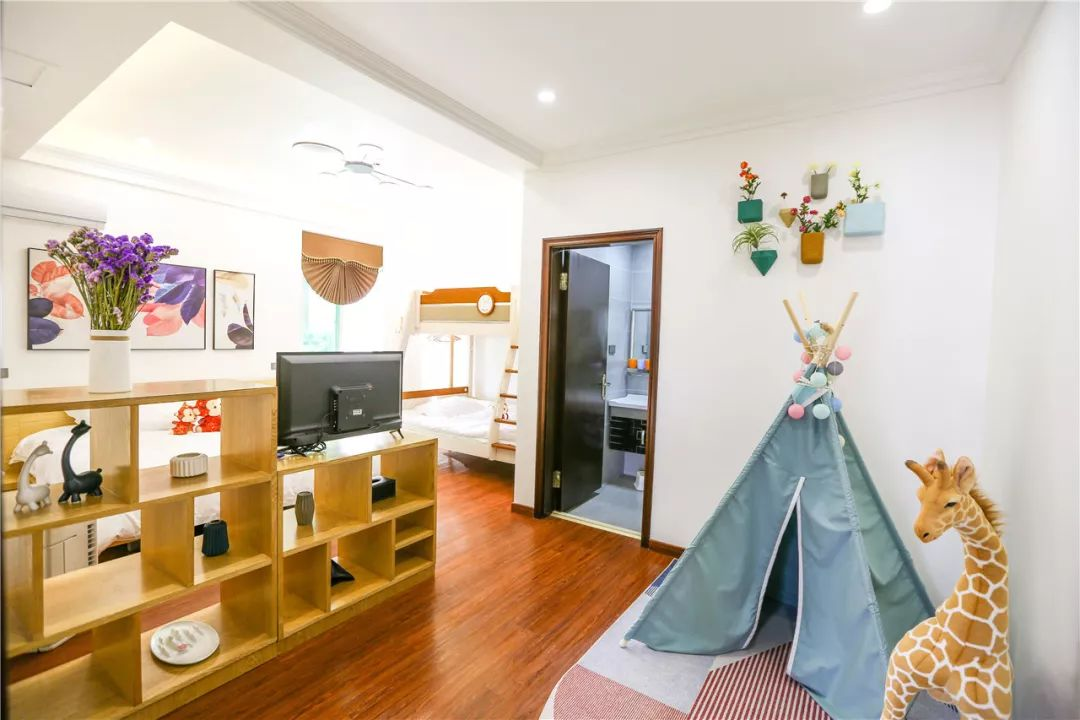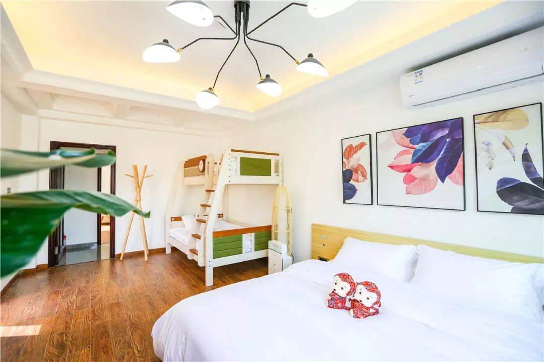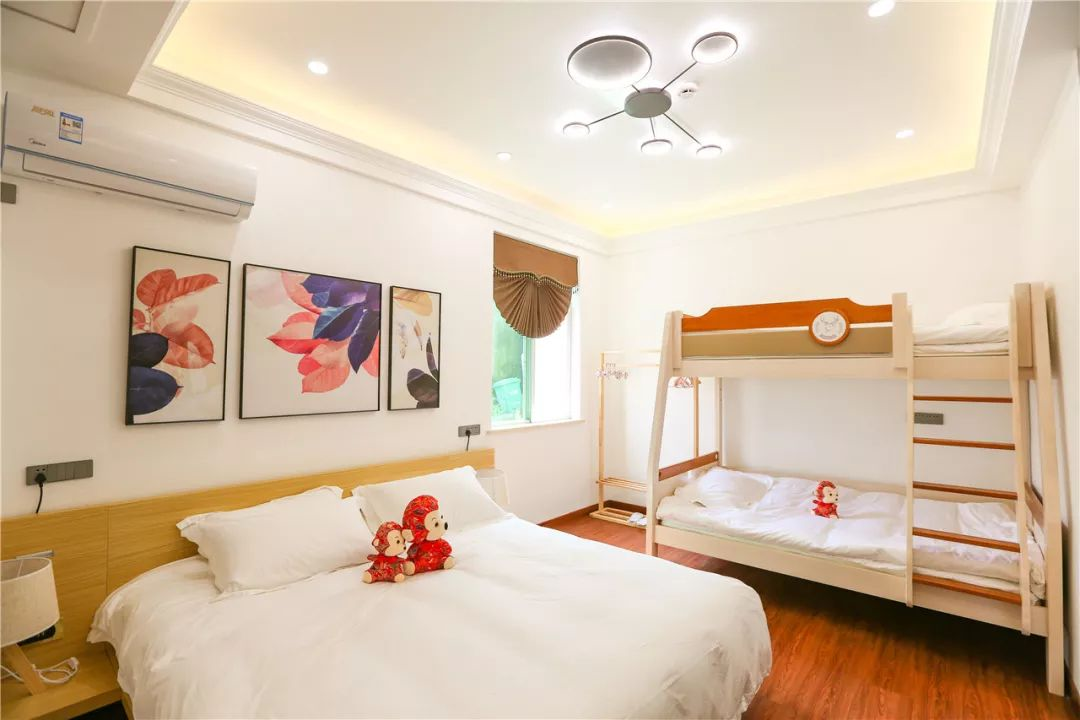 鸽尾花宿主打的两大两小模 式,一张大床房加两张上下铺小床,完美消化了如今的二胎家庭配置。